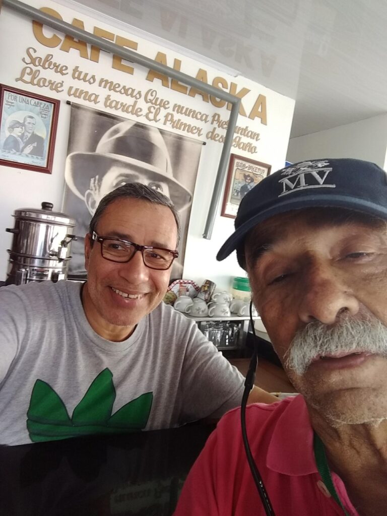 Selfi con Gustavo Rojas, alma y nervio del café Alaska, el decano de los bares de tangos de Medellín.