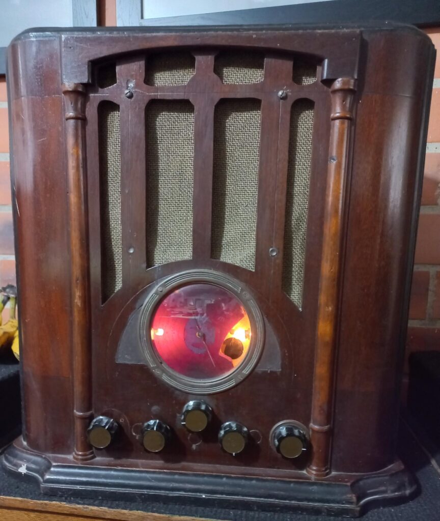 Este viejo cachivache es de propiedad del envigadeño Mario Vélez, coleccionista de música antigua. Esa radio está como Lola en sus quince: todavia funciona.