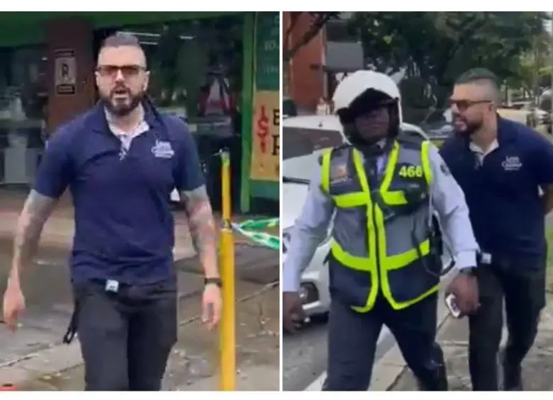 Sin tener nada que ver con una infracción de tránsito, este sujeto salió de un supermercado en Cali a agredir de manera racista a un agente de tránsito. Hoy está denunciado y detenido mientras se resuelve su situación. El Colombiano