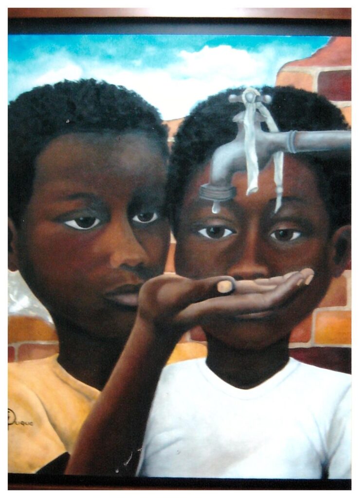 «Sitio», tengo sed, porque la plata que era para el agua fue a dar a los bolsillos de los corruptos, (Óleo de Gloria Luz Duque)