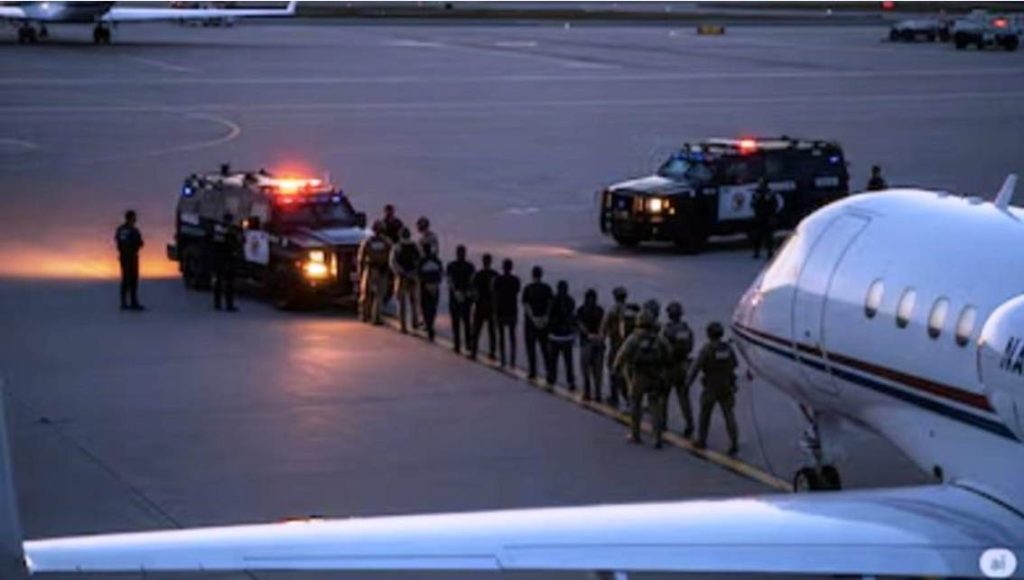 En fila y bajo un poderoso operativo de seguridad fueron llevados a bordo del avión de la DEA que llevó a los capos mexicanos a responder por sus actividades ante los jueces de los Estados Unidos. Somos Noticia