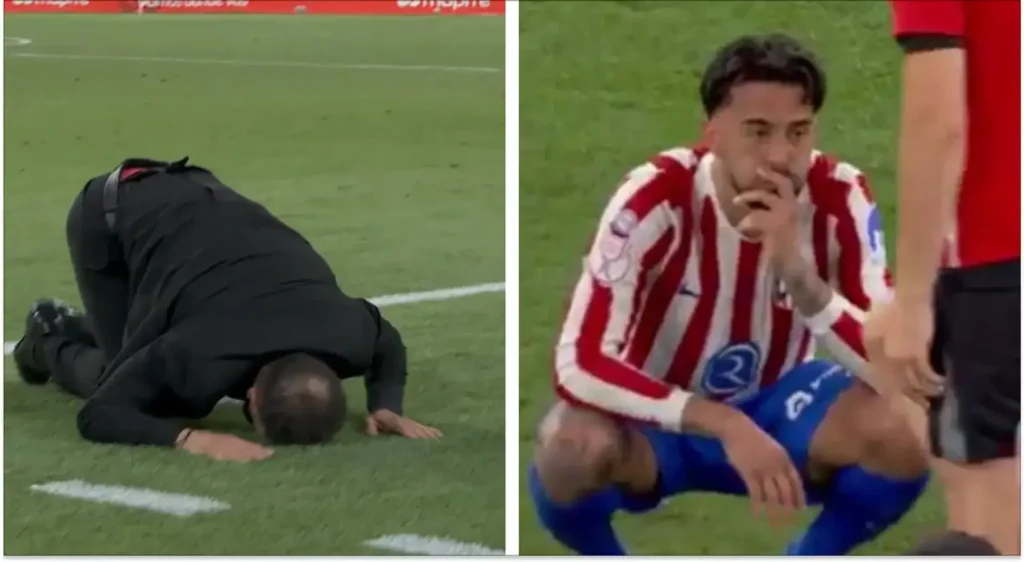 La desolación de técnico y jugadores del Atlético de Madrid por la derrota ante la Real Sociedad que alzó la Copa del Rey de España. Fotos tribuna.com/Yahoo