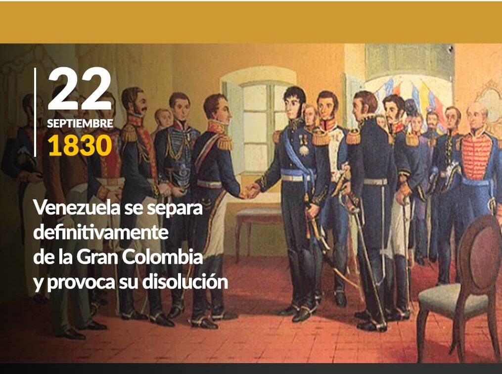 El 22 de septiembre de 1830: Aprobación de la constitución de Venezuela del Congreso de Valencia en donde se declara la separación de la Gran Colombia.