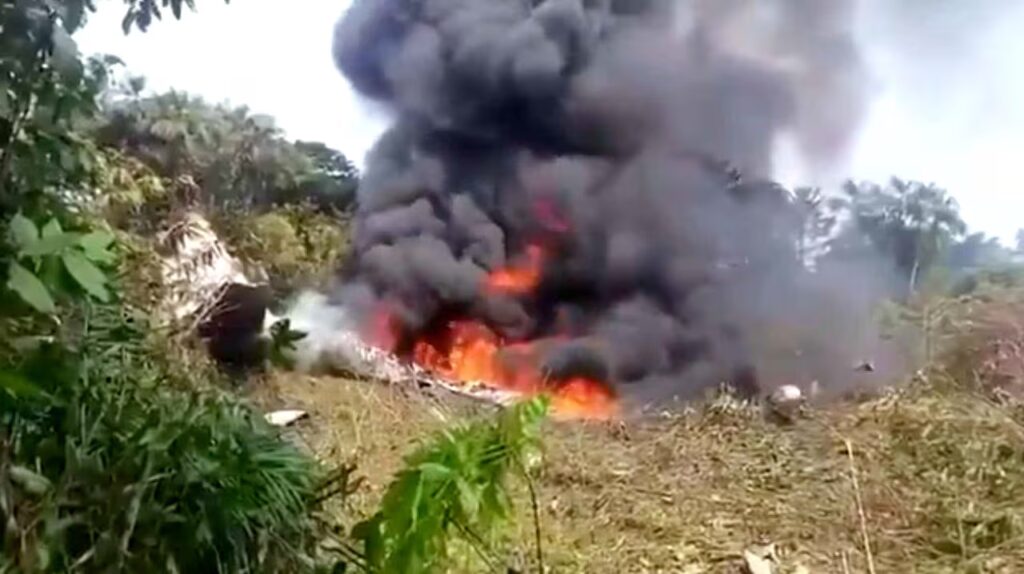 Imagen de un habitante de Puerto Leguizamo, Colombia, del accidente del avión Hércules con 114 militares y civiles. Foto Univisión/Google