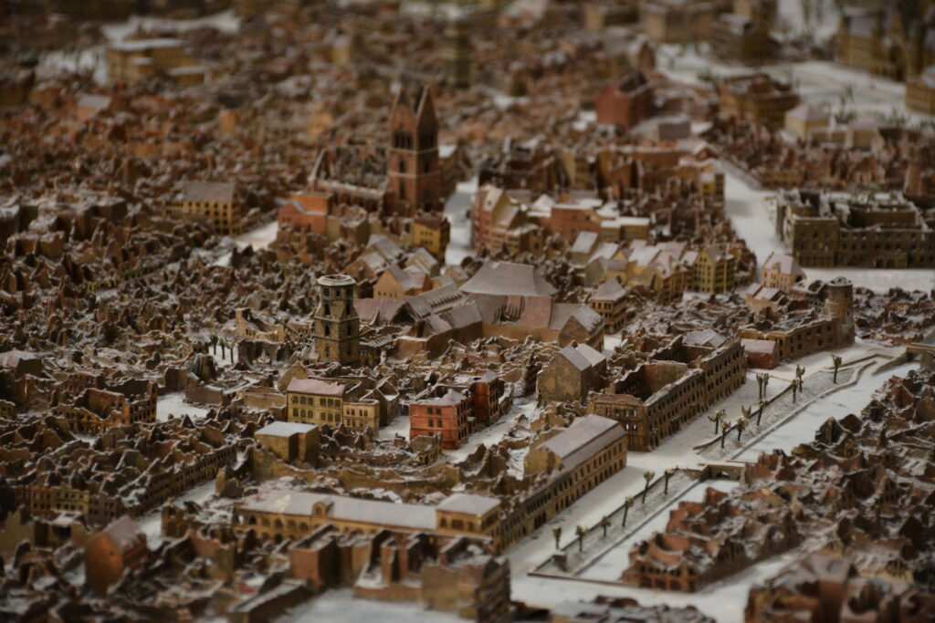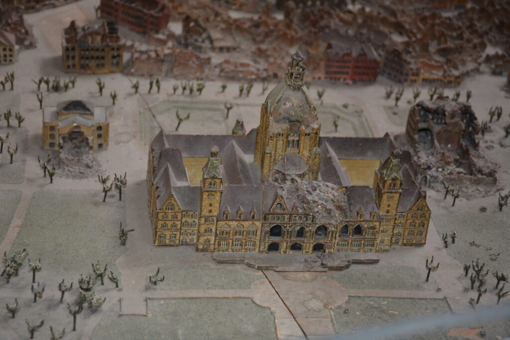 Maqueta que ilustra los efectos del bombardeo de los aliados sobre Hannover en 1945